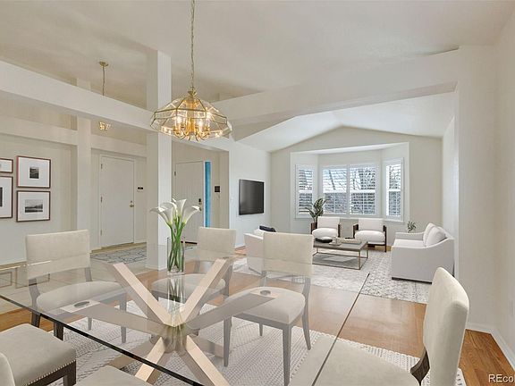 Welcome to this charming 3-bed 3-bath ranch nestled in quiet Saddle Rock Ridge neighborhood. Bright and airy living spaces flooded with natural light. The living and dining room have an open-concept for easy flow. Eat-in kitchen with neutral countertops, natural wood cabinets and quality stainless steel appliances. Cozy fireplace in family room with vaulted ceilings provides a great place to entertain or relax. Primary bedroom has ensuite 5-piece bath with jetted tub. Two spacious bedrooms with lots of closet space and laundry hook-ups just down the hall. Hall bath has newer updated shower. Partially finished basement to use as possible media room or add more bedrooms. Nice 3/4 bath in basement for convenience. There are so many ways to increase your living space in this large basement with extra insulated walls. Backyard is low maintenance with artificial turf making pet lovers happy or easing your water usage in the hot months. Fresh paint throughout. Brand new roof completed this winter. 3-car garage has new openers with blue tooth capabilities. Vivent Security System for extra peace of mind. GREAT LOCATION near Cherry Creek Schools, Southlands Mall, restaurants, and close to E470 and airport. Don't miss this chance! Schedule your showing today!