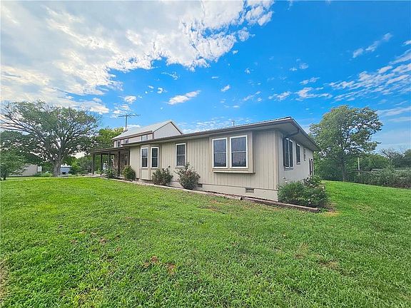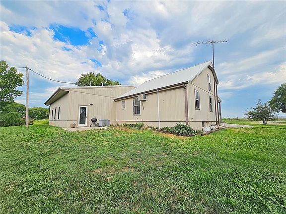 Hunter's haven! Mix of timber and pasture. Deer and turkey. 3 ponds (1 is stocked). Kitchen/dining area/living area, laundry room, master bedroom and master bathroom were added on about 10 years ago. Kitchen has Granite counters, farm-style sink, soft close cabinets and walk-in pantry. Massive laundry room has space to make an additional bedroom or office area. Area where old kitchen was would make a great 5th bedroom or office. NEWER windows. NEWER concrete porch, sidewalk and patio. Basement under older part of home is not very old. Only the northern part of the property is in a flood plain (not near the home). 47' X 50' outbuilding has a concrete floor set up for heated floors, electric, 2 tall and wide garage doors, is partially insulated, has attic area, has a hay loft and has a 16' X 20' workshop area. 40' X 60' outbuilding has electric and 3 tall and wide doors. Grain bin plus a couple older sheds too. Peach, cherry and apple trees. Elderberry bushes, horseradish plants, rhubarb and asparagus. ***Seller is offering a $10,000 repair allowance***Seller would sell the home with 10 acres m/l for $425,000.