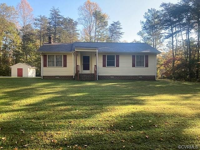 Cozy and comfortable rancher nestled in wooded setting on 3+ acres. New roof (2018) newer wood flooring in Family Room, hallway, and master bedroom. Master Bath has tiled flooring, eat in kitchen and tiled laundry room, 2 workshop sheds with electricity, 3 bedrooms, 2 baths, close to Kings Dominion and the Fair Grounds