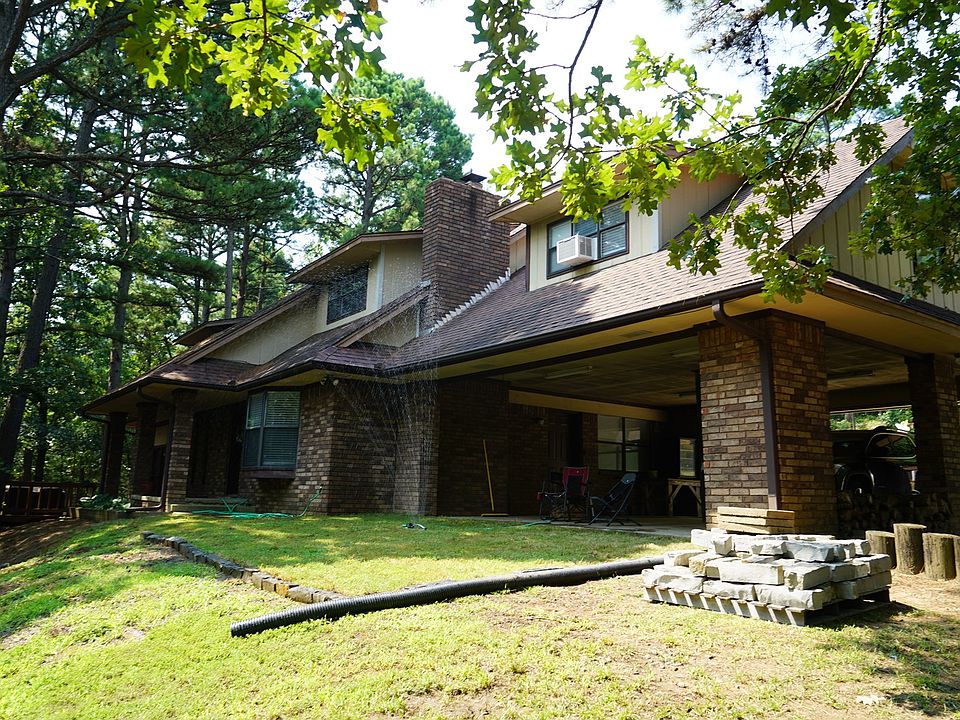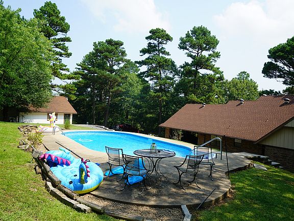 SOUTHEAST OKLAHOMA HOME FOR SALE ON 10 ACRES! LOCATION: 22625 Bluebird Lane, Poteau, Oklahoma is located on the northside of Poteau, Oklahoma in the desired ABM Addition. The surrounding area offers many recreational activities for the outdoorsman. Wister Lake State Park, Cedar Lake, Broken Bow Lake, Kerr Lake, Lake Eufaula and Lake Sardis are a short drive away as well as the 1.5-million-acre Ouachita National Forest which offers excellent hunting for whitetail deer, eastern wild turkey, black bear and numerous small game animals. The property is approximately 5 miles Southwest from the county seat of Poteau, Oklahoma, a 20 minute drive from Fort Smith, Arkansas and about a 4 hour drive from Dallas, Texas. SERVICES: Kiamichi electric, RWD #14, mail route, and internet. LAND: This 10-acre m/l offers privacy and sits on the dead-end road of Bluebird Ln. It offers a park like setting with large mature trees. HOME: This beautiful brick home on concrete foundation sits on the hill side at the base of Cavanal. The home was built in 1987 and has 2,903 Sq. Ft. of heated and cooled living area. Throughout the first floor is freshly painted Repose Gray textured walls and textured white ceilings. Other features and updates include: KITCHEN/DINING COMBO: 21.88'x13.44' marble tile floor, updated white cabinets with tile backsplash, 3 door Whirlpool refrigerator, Whirlpool double oven with glass stove top and an overhead microwave. The kitchen island is approximately 6 ft. long with breakfast bar top seating and a stainless-steel double basin sink. LIVING ROOM: Separating the 15.12'x19.31' living room from the kitchen is a peak a boo wall with whitewashed brick. This area has wood vinyl flooring and tile in front of the whitewashed brick wood burning fireplace perfect for game night or hosting family gatherings. BEDROOM #1: Stepping down from either the hallway or living room is a 15.13'x14.91' bedroom with a walk-in closet, ceiling fan with light fixture, wood vinyl flooring and French doors that lead to a balcony. HALL BATHROOM: This updated ½ bath has shiplap walls, a single vanity with mirror, and a toilet. UTILITY: 8.52'x9.64' has washer and dryer hookups, pantry closet, area for a chest freezer with overhead cabinets, and door leading to the pool patio. MASTER BEDROOM: 11.44'x14.92' vinyl flooring, ceiling fan with light and his/her walk-in closets. MASTER BATHROOM: single vanity with mirror, toilet and a tub/shower combo. UPSTAIRS: Stairs, hallway and bedrooms have a uniform look with Canvas color textured walls, white textured ceilings and a brown/taupe plush carpet. There are 2 storage closets in the hallway. BEDROOM #2: 12.31'x15.24' double closet, with two small coat closets, and ceiling fan with light fixture. HALL BATHROOM: Tile flooring, walls are a mixture of paint, wallpaper and white panel. There is a large two sink vanity with mirror and tile backsplash, toilet and tub/shower combo. OFFICE/MULTI PURPOSE: 14.04'x6.46' with walk-in closet. BEDROOM #4: This room is divided into 2 areas. Area 1 - 12.23'x15.29' ceiling fan with light fixture, double closet and one smaller coat closet. You walk through area 1 to get to area 2 which is a 25.82'x12.03' vinyl flooring room with ceiling fan, and two light fixtures. CARPORT: Approximately 24'x23' updated covered 2 car carport with concrete floor. INGROUND POOL: From the utility door leads to a rock stair well to an inground pool and do not be surprised if you are going for a swim and mother nature comes to visit. It is not unusual for deer to come up close to the pool. DETACHED GARAGE: 24'x16' concrete floor, single garage door with electricity. BALCONY: Approximately 12'x11' open balcony that oversees timber filled front yard. This is a great place to unwind and relax! TAXES: $1,572.83 est. PRICE: $350,000.00