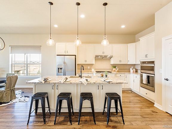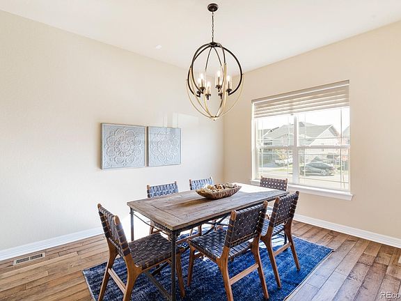 Welcome to Inspiration--a 55+ neighborhood named Community of the Year in 2019 by the Home Builders Association of Metro Denver. Sporting the Fairplay Country Manor floorplan, this 2 bed, 2 bath home features gleaming modern elements in an amenity-laden locale. The open main floor greets w/ a formal dining area capped w/ a stunning chandelier. Hardwood floors flow into a soaring living, dining + kitchen space surrounded by windows. The bright kitchen features granite countertops, stainless steel appliances + an eat-in center island. Connected by an additional dining space, the bright living room includes a vast gas fireplace + balcony access through a three panel glass sliding door. Enjoy upgraded, neutral Hunter Douglas window coverings throughout. Meander into a primary suite w/ windows on three sides, plush carpeting + dual immense walk-in closets. The spa-like en-suite bathroom features dual vanities + a roomy walk-in shower w/ bench. Ready to be reimagined to your precise needs, the walk-out basement offers seamless access to a community that features a clubhouse, pool, BBQ area countless events.