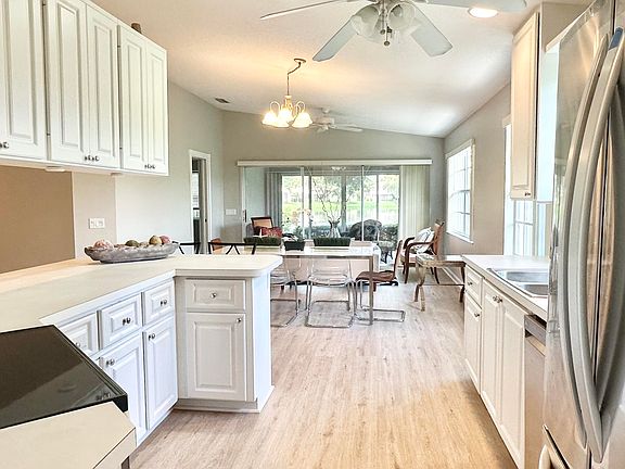 Wow!! This is a deal!! Prime location with wide lake view, very close to pools, restaurants and the wonderful amenities that RiverWalk has to offer. NEW GORGEOUS VINYL FLOORING, FRESH PAINT, NEW STAINLESS APPLIANCES, ACCORDION STORM SHUTTERS!! AC only a few years old, large lot, patio has been enclosed with glass sliders creating a beautiful Florida room with a view of the garden and lake (amazing sunsets!). The principal suite has its own bathroom and large walk in closet - the guest suite also has a private en suite bathroom and walk in closet - separate end of the home from the principal bedroom for privacy. The kitchen has plenty of cabinets for storage and opens to the Great Room which features the desirable Built In Wall Unit that was a popular builder upgrade. Perfect set up for entertaining! The entire house plumbing system was just replaced to ensure that the house will comply with recent insurance changes. Separate laundry room with washer, dryer and utility sink. The home comes with a central vacuum system and wired for alarm system.