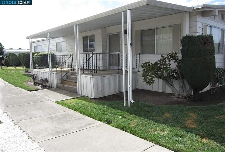 Beautiful and affordable manufactured mobile home park in Concord. This 2 bedroom, 2 bath home is bright and sunny with a spacious living and dining area. Open kitchen family room combo with lots of built-in cabinetry. Seller very motivated and looking for a serious buyer that wants to create their own style of home inside. 2 year old roof ! Newer washer, dryer, freezer and refrigerator all stay. Seller willing to negotiate a credit at close of escrow for floor covering and exterior painting (Buyers color choice). Enjoy all the amenities of the pool, spa and clubhouse, walking paths, and pond with fountain. Most importantly, quiet and peaceful 55+ senior community living, well maintained, great reputation, and considered very safe. Age of one of the buyers must be 55 or more, and the park must qualify the buyer for tenancy AFTER contract is signed by buyer and seller. Just bring us an offer !