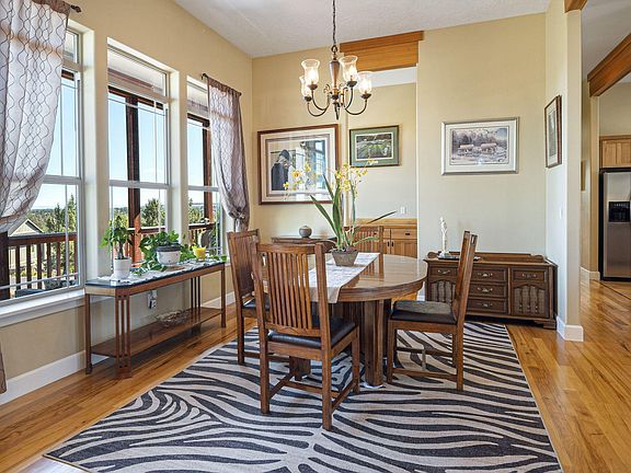 Take in spectacular Cascade mountain views while relaxing on your front porch located on a quiet cul de sac in the desired Eagle Crest Community. This elevated lot offers a one level open floor plan, vaulted ceilings and abundant natural light throughout. The Spacious office with beautiful French doors is perfect for remote work or quiet study. The formal dining room with butler pantry and mountain views is ideal for entertaining. The backyard offers an oasis featuring covered porch as well as a remote controlled retractable awning along with a professionally landscaped garden area and water feature. Resort style living at its finest with amenities including golf, tennis, pickleball, indoor and outdoor pools, fitness centers and numerous walking trails. This is a MUST SEE !