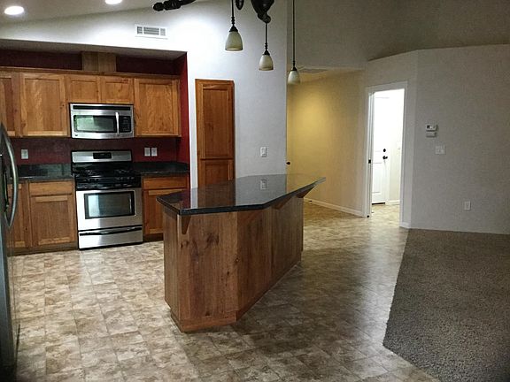 3 bedroom 2 bathroom home (1465 sq ft), located off of Kellenbeck Ave in Grants Pass. 5 minute drive to Hospital and 5-15 minute drive to all schools. Nice, well kept family neighborhood. Kitchen island, granite counter tops, stainless steel appliances including: gas range, refrigerator, dishwasher & garbage disposal. Single floor plan, vaulted ceilings with plant shelf, heating and air, laundry room with w/d hookups, covered patio (with roll down screens to partially enclose patio), small fenced backyard, sprinkler system and 2 car, attached garage with openers. Grounds care provided. No Pets. No Smoking. $40.00 Background check fee (Applicant pays directly to background check company) Owner pays ground care. Tenant pays electric, gas, water/sewer, garbage.