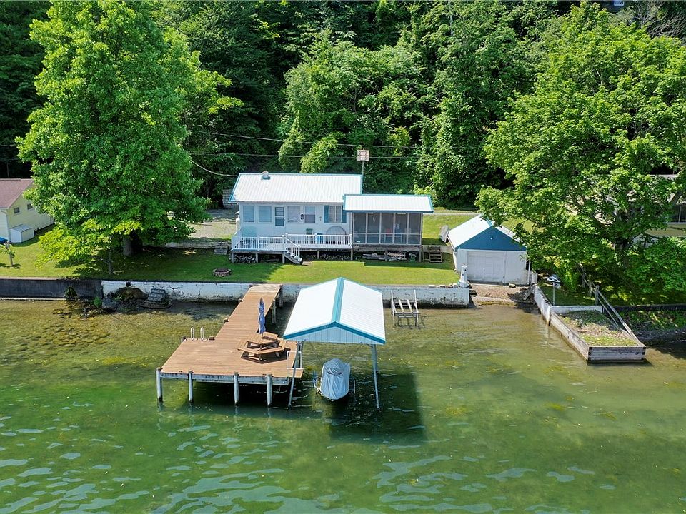 Seneca Lake-Cute one-story cottage with attached screened porch and boat house on Seneca's west side. 99' of lake frontage, 2 bedrooms with potential for a third. All on a very level setting, with plenty of parking. HOA for road maintenance of only $225 per year. Newer metal roof, and an aerobic septic system. Here is your opportunity to be on the lake this summer!