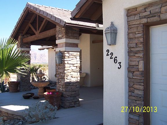 Please call Milt Caldwell, owner and listing agent at 770-415-9409 or email to miltcaldwell@aol.com for more information or to arrange to see this home. 2 suites with baths and large den, office or library which could be used as third bedroom. 2 car attached garage with side door to outside extra parking area good parking for RV, etc. Direct access to house from garage through laundry, utility room with utility sink. Has spa off master bedroom patio. Home is available fully furnished for $7500.00 optionally. Features include fine finish with high ceilings, fans, arched windows on both sides of fireplace. Lots of travertine flooring and use of granite and marble. Located at edge of Anza Borrego Desert State Park, with views up Palm Canyon, and panoramas across the valley. Close to town center and country club near.