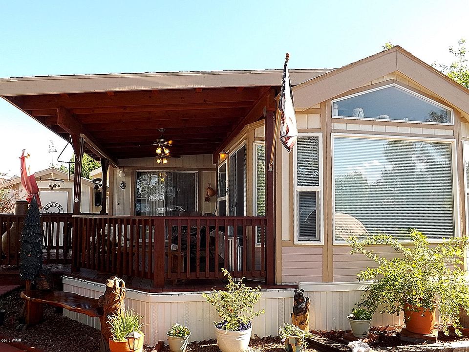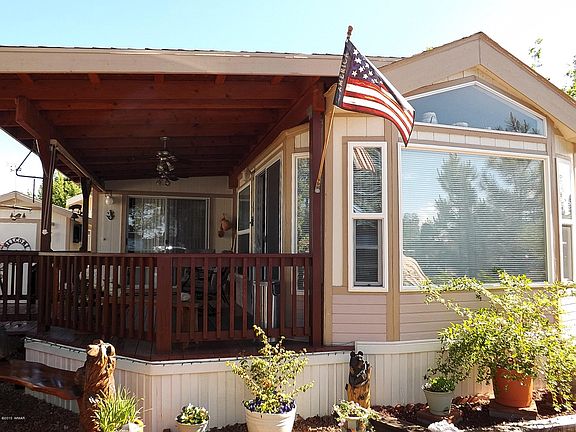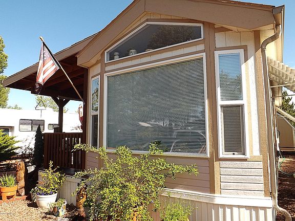 Pristine 2003, 589 SqFt Cavco in the private community of Pinecrest Lake in the Rim Country of Overgaard. This home offers a large North facing front window, easy work around kitchen with lots of cabinetry and GE appliances, bull nose tiled counter tops, built in china and curio cabinets, surround sound with CD player, berber carpeting, two skylights, tinted dual pane windows, five ceiling fans, central heat and cooling, and a 10x16 room addition that can be used as an extra sleeping area or family room. Equally impressive, the exterior boasts 200 SqFt of covered decking, and a 40 SqFt extended uncovered deck, gutters and downspouts, cement pavers and a 8x14 finished and insulated utility building. Masterful and meticulous landscaping exudes pride of ownership. Comes furnished.