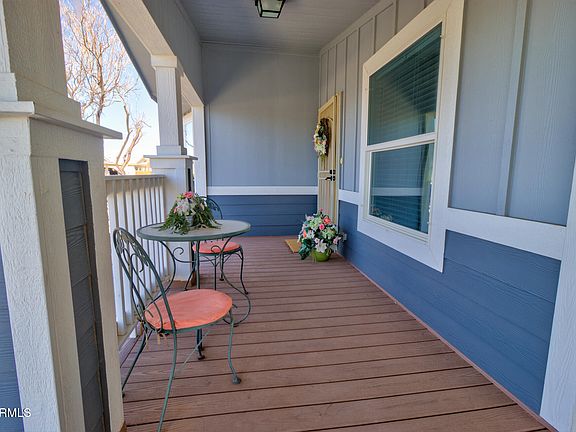 Furnished former model home; Wrangler floorplan - no neighbors behind. Home is well appointed grey & white color palate & tasteful decor. Vaulted ceilings in living & master bedroom. Kitchen is large & offers a breakfast bar, peninsula, white shaker cabinets, skylight, stainless steel app., can lighting, pantry & access to patio. Eat in kitchen & built in desk finish off the space. Master offers walk in closet, vaulted ceilings, carpet. En-suite has dbl sinks, step in glass shower, skylight. Living rm - surround sound for movie night. Vinyl tile floor in main living area/kitchen, baths &laundry. Inside laundry with loads of storage space! Outside you will find epoxy floor carport and cvd patio. Studio w/built in desk, portable a/c, Gas stove/heater, bar sink and storage. Come see this beautiful home. Rear yard is easy maintenance on auto water drip system. Owner changed main piping to PVC from the black hose, sure to last. East facing rear yard for morning sun and shade in evening. Block wall is perfect for added privacy. Move in ready and everything stays! Pots, pans, decorations, furniture (inside and out). See additional list in docs tab.