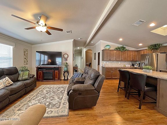 Move in ready, 2019 Cavco home in 55+ community has so many upgrades starting with 2x6 construction, double carport, 10x20 custom built storage shed/workout/craft room w/electric and the H20 water softener. A screened in patio area just right for enjoying dinner or cool drinks. Gorgeous kitchen has SS appliances, plenty of cabinets, a stylish backsplash, a Skylight and a large island and dining room cove area. Vaulted ceilings are accented by ceiling fans, wood cornices and window blinds. Gather your friends & family to enjoy the adjoining great room then venture into the office area with a ceiling fan and sliding doors to the patio. Down the hall is the main bedroom, wheelchair accessible ensuite & shower. The guest bedroom has its own guest bath/shower. See all amenities.