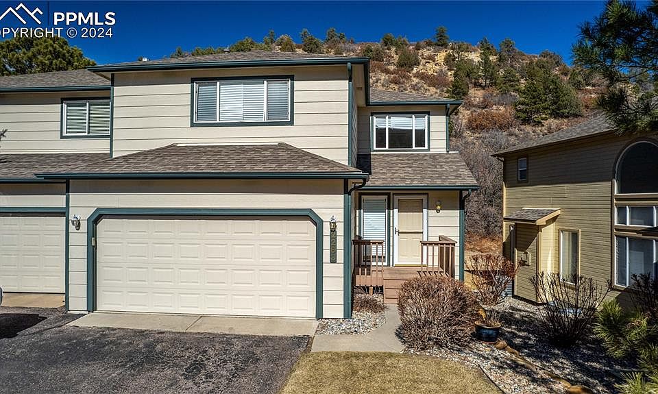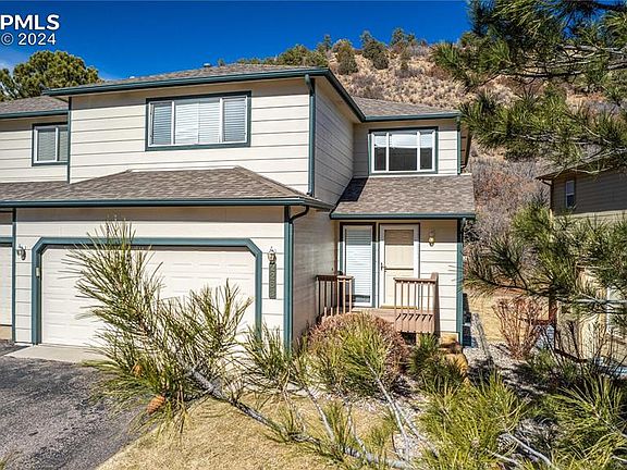 Fantastic oasis in the city, nestled between UCCS and the upscale University Park neighborhood! Plenty of space with nearly 3500 total SF, including 2 bedrooms plus a loft. The Owners Suite is a dream- imagine tucking into your sitting area, in front of your cozy fireplace right there in your bedroom, and overlooking the bluffs with a cup of coffee and a good book. Talk about heaven! Large walk-in closet, dual sinks, jetted tub & tons of cabinet and counter space in the Owner's Bath. The main level has an ideal layout with a large Great Room/Living Room extending from the front of the home clear to the back with a gas fireplace, big kitchen nook, and even a long breakfast bar for casual dining at the kitchen counter. The dining area walks out to the big covered deck for year round enjoyment. Hardwood flooring on the main level & newer carpet! Updated fixtures & fresh paint! You'll love the big finished 2 car garage with a newer epoxy-coated floor! The unfinished basement is garden level, allowing ample natural light to flow in & provides tons of storage space OR room to finish & expand! In addition to the upstairs laundry, the basement is already plumbed for another bathroom & laundry room. Walk right out your door to incredible hiking trails right in your own neighborhood, plus you're close to more hiking & biking trails at Palmer Park, Pulpit Rock & Ute Valley Park. You might stop in your tracks when you see the gorgeous views, from the stunning backdrop of the bluffs directly behind the home, to the views from the upstairs bedrooms across to the open space! Great cul-de-sac location on this quiet street, surprisingly with NO traffic noise & only residents driving through. Flat lot for easy year-round access and no icy road worries - the HOA even plows! This home is a true gem, tucked in the center of the city, just a few minutes from Target and other shops & restaurants along the North Academy corridor. Schedule your showing today!