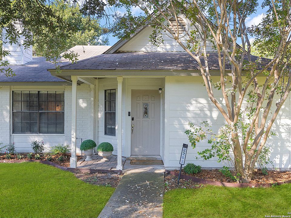Beautifully Updated and Move-In Ready in Castle Hills Forest! This charming 2 bed, 2 bath home is truly turn-key with thoughtful renovations throughout, including a beautiful island kitchen, new flooring, fresh interior and exterior paint, and more. Large windows fill the home with natural light and an oversized laundry room offers additional storage. Enjoy one of the largest lots in this quiet and established neighborhood with your private backyard deck, canopy, and shed. Located on a cul-de-sac lot in Castle Hills Forest, this home is walkable to Hardberger Park, Natural Grocers, shopping, dining, and the neighborhood pool and trails! *Buyer to verify measurements and schools*