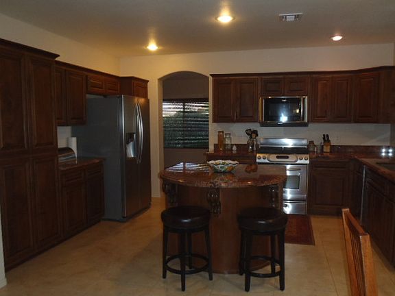 Gorgeous Falls Ranch home with your own backyard oasis! This amazing home has it all! 5-bedrooms, 3-bathrooms, 4-car garage, lush mature landscaping, and a swimming pool with spa. The kitchen features granite counter tops and stainless steel appliances, there is a wet bar for entertaining, carpet in bedrooms and living areas, and tile throughout the rest of the home. You will also enjoy a large master bath with his/her walk-in-closets, a garden tub, spacious bedrooms, and a study/library. Make it yours!