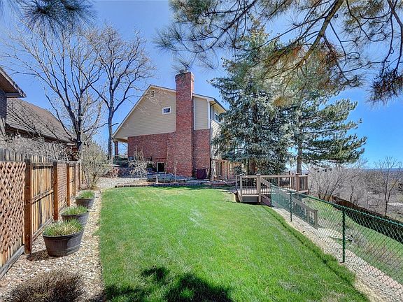 Custom home updated throughout with expansive views to the south over Bear Creek. Large 1/3 acre fenced lot with mature landscaping on a quiet cul-de-sac. Finished walkout basement with storage area, laundry/craft room and 3/4 bath. Energy efficient with air conditioning, attic fan, ceiling fans and LED lighting. Four large bedrooms including two walk-in closets, and laundry chute. Spacious kitchen has solid surface counters, tile backsplash and stainless appliances as well as under-mounted lighting and a pantry. Three large Trex decks for entertaining and viewing. Custom shed for storage. New interior paint and carpet 2019. Pull down stairs in hall and garage for easy attic access. Oversized two car garage with three car driveway. Walking distance to Carmody Recreation Center/Park and Carmody Middle School.