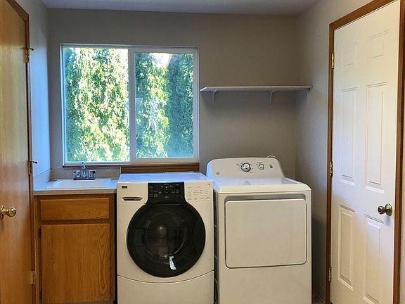 3-Bedroom House in McMinnville - Three-bedroom single-level house in SW McMinnville, located within 1 mile of West McMinnville Linear Park and Discovery Meadows Community Park, and within 2 miles of Linfield College, McMinnville Public Library, Aquatic Center, and Downtown McMinnville. Downtown features many dining, wine tasting, and shopping opportunities. Two-car garage with opener, three full bathrooms, fenced yard, covered patio, large utility room with sink, vaulted ceiling, electric heat pump in Living Room, wall heat throughout, ceiling fans in most rooms. Washer/Dryer included. Yard maintenance included. Small pet allowed by approval with additional deposit. Schools: Columbus Elementary, Duniway Middle, and McMinnville High. (RLNE6282639)