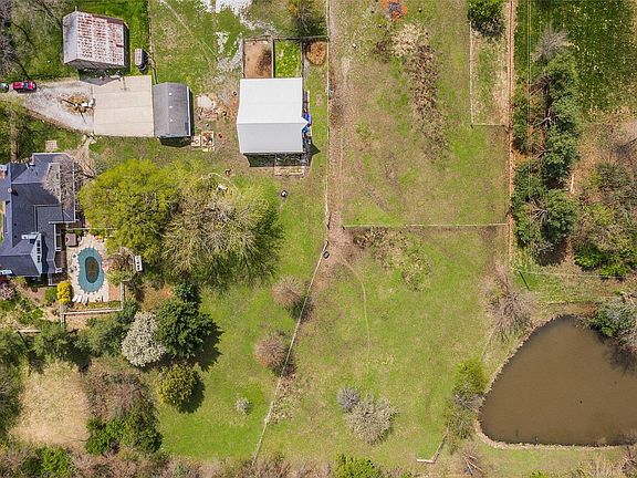 Peaceful, country living awaits you at this gorgeous 5 acre property! This updated "farmhouse" features 4000+ sf, 4 bedroom, 4 baths, large main floor laundry w/extra storage, formal dining & living (w/fireplace) rooms, library space, spacious family room w/fireplace that opens to the patio & pool area! Kitchen features a center island, 2nd prep sink, granite, pantry & stainless appliances(inc gas range & 2nd gas cooktop). Two staircases to the 2nd floor where you will find spacious master suite w/fireplace and en suite updated bath w/sep tub & shower, tile floors & custom walk-in closet. Also 3 more bedrooms, 4th full bath & loft area. This home is the perfect combination of authentic originality & modern amenities! Outside space is fabulous w/inground pool(chlorine 3'-10'), wraparound porch, 2 barns, storage barn, horse stalls, patio outdoor pizza kitchen & fireplace, 1/2 acre stocked pond, spacious 3 car garage,