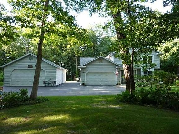 Your new 4-bedroom home is nestled away on almost 2 acres of privacy. Relax on your patio and enjoy the wooded view with more yard beyond. Main floor offers great room w/ skylights, living room w/ fireplace, dinette, kitchen w/SS appliances, bedroom and lau rm. Lower level has rec rm, office and large storage area. In addition to the 2-car attached garage, a 36x24 detached with front and rear overheads! Located near Hwys 45 and 20; only 30 minutes to downtown Milw and Racine.4-wheeler and mower included!