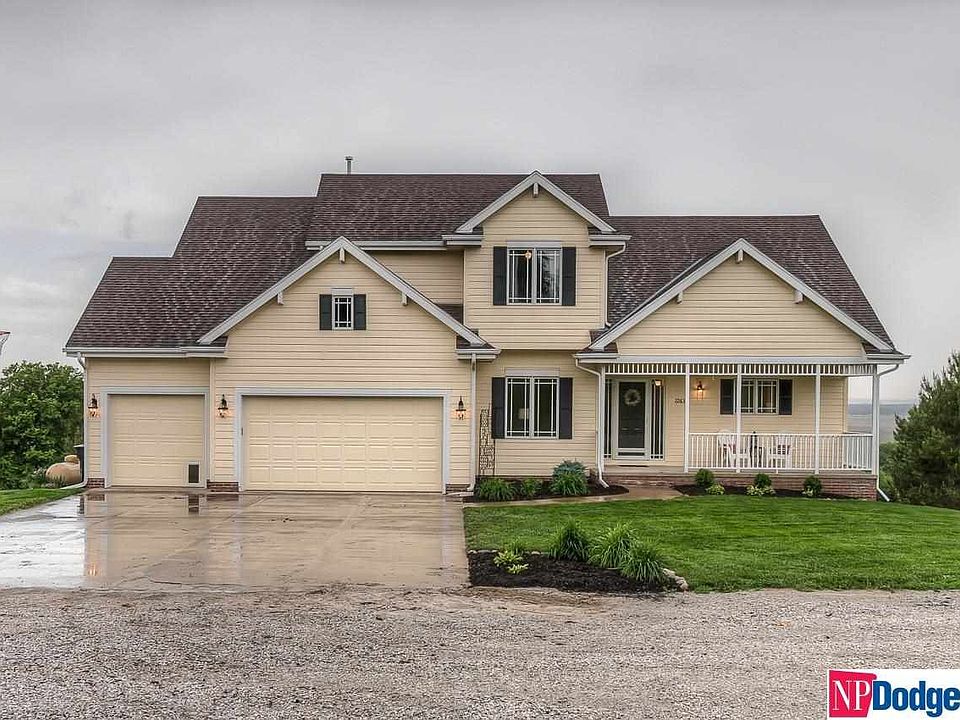 Spectacular 4BD/4BA 1.5 Sty on 3 acres w/ a 8-car detached garage in Gretna! Beautiful hardwd flrs & eat-in kitchen w/ granite & all new slate applnces! Main flr MSTR w/tiled bath, granite & walk-in closet. All bdrms w/ BA access. Finished W/O LL rec rm, home theatre & 4th BD w/ 3/4BA. Enjoy the 10-mile views from the sunroom or large deck! Heat pump, sprinkler system, sec. system. Great yard w/ patio, fire pit & playground! Fantastic location close to I-80, restaurants, outlet malls & schools!