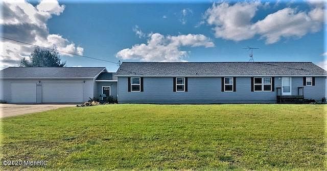 4,500 SQ FT of finished Living Space!! Ranch in-between BR and RC...close to 19 Mile Road Exchange for 131....2.76 Acres on private road....This home has nearly everything you would have on your DREAM HOME list! Insulated garage, above ground pool , fenced yard, deck w/pergola. Breezeway, storage, large closets, open concept, country views from windows out back....finished knotty pine family room /game rooms in basement, extra room from office/or gym...even comes with a beautiful Pool Table