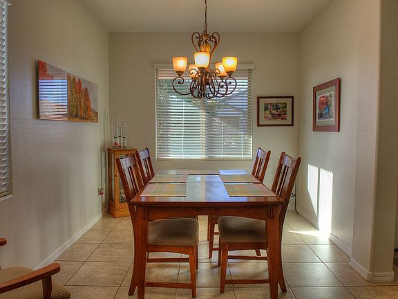 Sundance is a suburban paradise in Buckeye, Arizona that is perfect for all lifestyles. The Sundance Golf Club is an 18-hole golf facility located in the West Valley of Phoenix. Panoramic views of the White Tank Mountains to the north and the Estrella Mountains to the south provide guests with a great visual golfing experience. Once inside the home, it is a warm blank slate of fresh neutral tones awaiting a personal touch featuring 18'' ceramic tile flooring in all the right places. The kitchen is showstopping, rich cherry wood cabinets, Whirlpool appliances, and sparkling granite counters. New (2020) wood grain tile flooring in the secondary bedrooms. A 4' iron fence around the back patio with a strip or artificial dog turf and a doggie door makes for the perfect secluded area for your 4-legged friends. 4' block walls with decorative iron and a 6' gate provides beautiful privacy for your professionally landscaped back yard boasting a multitude of mature trees including oleanders, pepper tree, and mountain laurel tree. This is an active adult's dream 55+ community with all the amenities, including an 18 hole golf course, billiard room, pool/spa, tennis courts/pickleball, and a newly remodeled clubhouse. Idyllic for a lock and leave or for all year round fun in the sun!! Quiet streets with walking paths and beautiful landscaping.