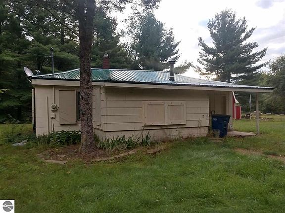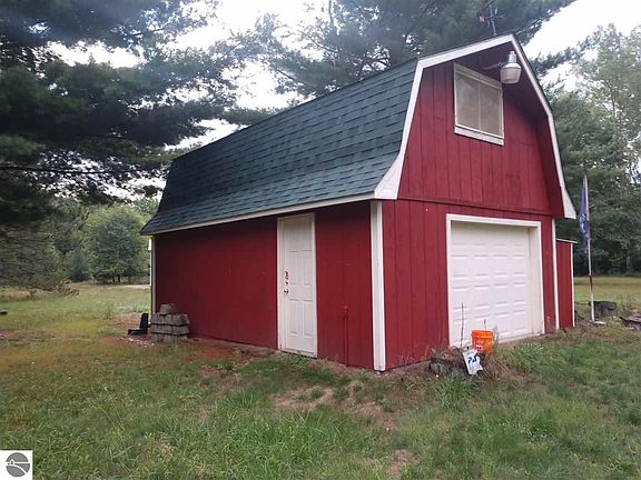 This 48-acre wooded parcel with close access off I-75 adjoins several hundred acres of State land, has a great trail system, and multiple raised deer blinds w/established hunting areas resulting in years of successful hunts. The 2-bedroom cabin offers both a wood stove and propane space heater, new steel roof, new submersible, deep well, and furnishings! For storage there is a 2-story garage w/ a new roof and a new drive thru 2nd garage w/ concrete floor. The trails can also offer up winter-time snow-shoeing and x-country skiing opportunities, then for summer, pick blueberries and enjoy night-time gatherings around the big fire pit with S'mores!