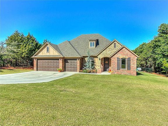 WOW! Factor everywhere you look in this amazing home in quiet country subdivision.You'll be impressed the moment you drive up to this impeccably maintained home. Large foyer welcomes you into stunning living area with beamed ceilings, stone fireplace and built in shelving. Pass-thru from living to kitchen for easy entertaining. Kitchen features impressive hand crafted cabinets with large pantry and oversized center island. Casual dining area off kitchen, PLUS formal dining or seating area off foyer. Nice study with french doors. Master suite with large bathroom area featuring his and hers vanities, jetted tub, large shower and huge walk in closet with tons of built in storage. Two nice sized bedrooms are joined by large jack and jill bath with dual vanities and built ins. Large utility. High end finishes everywhere you look! Huge back patio overlooks beautifully manicured and very private backyard with wrought iron fencing. Large 1 acre lot. Easy commute to Norman or OKC.