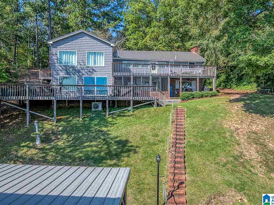 This home has been updated for Ultimate Lake Living! Make this your weekend getaway or your full-time lake dream home! BIG WATER views with approximately 1 mile across this section of Lake Mitchell! Updates in 2015/16 include new kitchen/dining/keeping room; new laundry room; new half bath on lower level; new master suite with huge bedroom, bathroom, and walk-in closet; upper level deck and huge main level deck for tons of outdoor living space; outdoor shower; new metal roof, new shake-style vinyl siding. 2019 new DOUBLE DECKER dock with HUGE upper deck that is partially covered with celing fans...lower level has 2 boat slips PLUS 2 PWC spots and a storage room. Lower level of home is all tile floors for no water worries along with master suite. Paddle over to Big Rock Island and jump from the cliffs. Great section of the lake that stays level year-round and is seldom busy with boat traffic. Make years of memories at this FABULOUS home on the lake! Home sold FULLY FURNISHED!