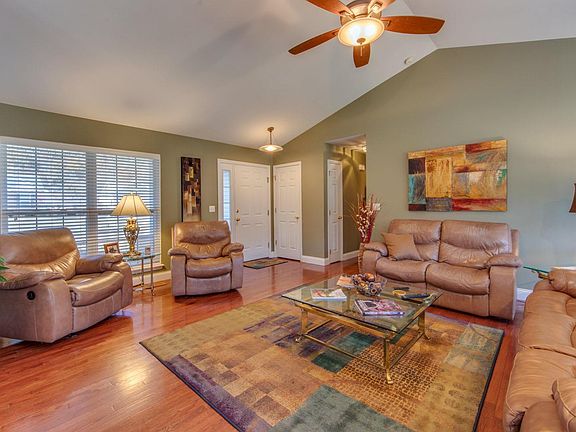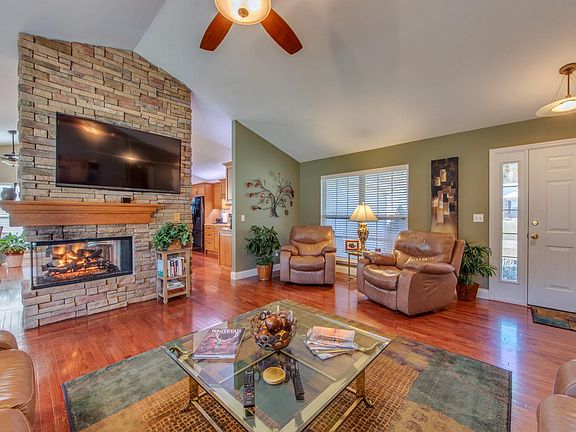 Located on a cul-de-sac street in the Sugar Creek Golf Course community, this meticulously maintained Atrium Ranch w/finished walk-out lower level will go fast!As you enter, notice the vaulted great room ceilings and plentiful windows which offer a stunning view of the golf course and lots of natural light. The new gas insert in the centrally located fireplace is cozy and inviting and can be enjoyed from the Great Room,Kitchen,and Hearthroom/seating area, which all boast beautiful Hardwood floors.Kitchen/Dining combo features granite countertops,Custom cabinetry, and more gorgeous views of the level, fenced backyard via a bay window.Lower level has a generously sized 4th bedroom and full bath.The adjoining Recroom with full wet bar is a party hosts dream!Newer Roof and A/C, HVAC regularly serviced.Kitchen Fridge and fireplace TVS included in the sale. Sugar Creek Golf Course offers memberships at a deeply discounted rate to homeowners with leagues available.Membership not required