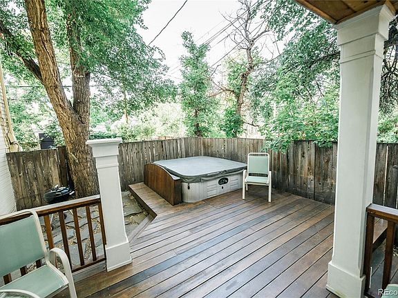 Located close to downtown, the Pearl Street Mall, CU, shopping, and the Boulder Creek Path. This Wolff-Lyon designed two-story duplex townhome is turnkey and absolutely charming. With very minimal shared wall area on only one side, and an enclosed, fenced yard- it lives like a single family home and feels large and open. Enjoy the neighborhood from the covered front porch swing. Relax in the secluded, fully fenced back yard with brazilian redwood deck, flagstone patio and hot tub. The bright, open floor plan includes hardwood floors, dining room, and master bedroom with large walk in closet. The second bedroom upstairs has vaulted ceilings. Two attached outdoor storage lockers fit your bike, toys, tools, and gear. Even an off street parking spot is included. No HOA.