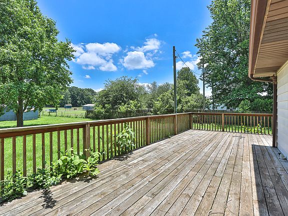 INVESTOR PARADISE!!! 15 acres with a beautiful view!! This home has so much potential! Possible 4 bedroom with 2 living areas, walk out basement, roof est 5 yrs old, wood burning fireplace in upstairs living area with exposed wood beams. Nice hardwood floors. Features include: huge deck on back of entire home that wraps around the south side, covered front porch, 2 sheds and a pole barn, a lot of mature trees - endless possibilities!!