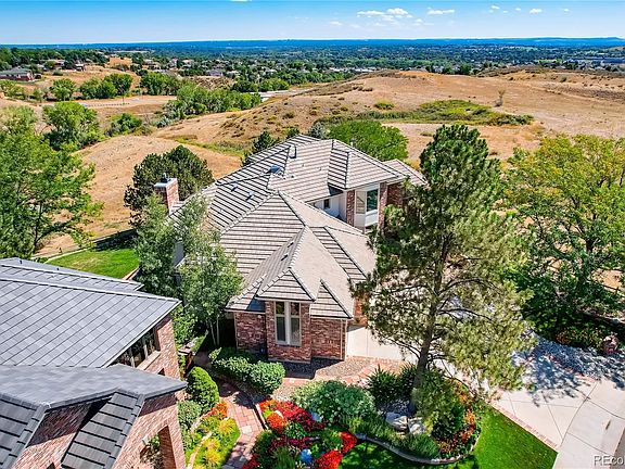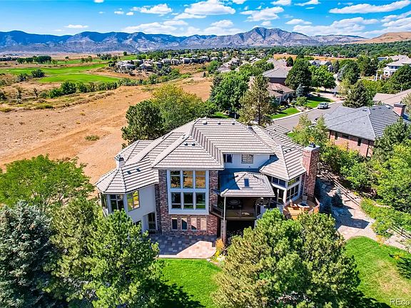 Spectacular views of the Rocky Mountain Front Range greet visitors to this stunning end of cul-de-sac five bedroom/six bath, 6,941 sf home with easy access to Downtown Denver and mountain highways. Striking curved staircases stand out in the entry foyer against 18-foot ceilings and large living room windows that bring in the morning sky and sunrise. The main level features a large secluded primary bedroom suite with a cozy sitting area and fireplace; a custom alder wood walk-in closet, and a five-piece bathroom with jetted tub, steam shower, and heated floors. Family and friends will be drawn to the large chef's kitchen with high-end appliances throughout, and to the adjoining great room with a 12-foot fireplace and custom Crestron home entertainment/home automation center. The covered, heated outdoor deck is accessible from the great room or the living room, is well-shaded from the afternoon sun, and features a 32-inch Viking grill and fire pit. The powder room and spacious laundry room includes a second 48-inch Sub-Zero refrigerator and generous storage, to complete the main level. The upper floor loft overlooks the main level living room and has a sitting/study area, plus two large bedrooms with private baths and walk-in closets. The Lower Walk-out level provides a large family/game room area with a wet bar and turreted sunroom that overlooks acres of Jefferson County open space, two more bedrooms with private baths and walk-in closets, a workout/theater room, a dedicated home office, large storage room, and a back staircase to access the main level and garage. Finally, mature landscaping and a heated 4-car finished garage with storage completes this hidden gem in Heritage West. You're not going to want to miss this one!