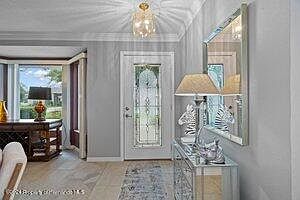 lighting, self closing drawers, and pantry with pull out shelves. Stainless steel appliances and new refrigerator in 2024. Flooring is tile and laminate. Family room has design wood wall. Second bedroom has built in office area and queen size Murphy bed. Master bedroom has ensuite bath with garden tub, updated shower and cabinetry, Inside laundry with newer washer and dryer. Oh don't forget the inground pool and lanai for your enjoyment. This has a great view of golf course and the sunsets. Property is nicely landscaped. Newer windows and front door. Window treatments, solar hot water heater, newer heat pump for pool.