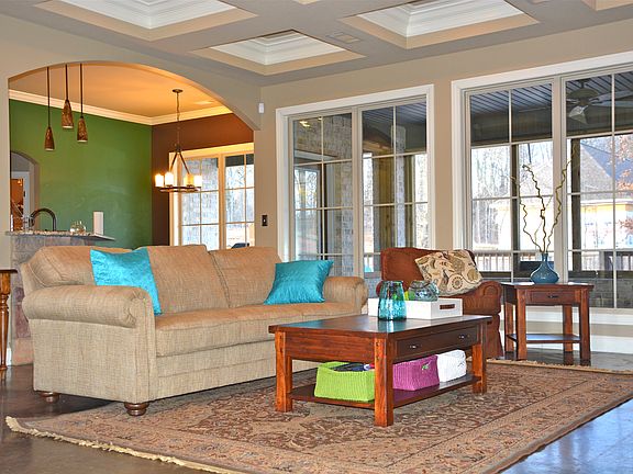 Just Reduced! This stylish 4 bedroom home in Valley View is brimming with luxurious upgrades such as granite countertops, brand new landscaping, coffered ceilings, custom built-ins, ample storage, and triple crown molding. Great open floor plan w/formal dining room that opens to the family room with fireplace, built-ins, coffered ceilings and stained concrete floors. Eat-in kitchen with breakfast bar, granite counters, walk-in pantry, and custom cabinetry. Main level master with large walk-in closet and luxurious master bath with double vanities, dressing area & custom tiled shower. Other amenities include a bonus room, screened-in porch, deck, fenced back yard, two car garage, laundry room, storage building & abundant storage inside. Relax on the large, finished deck and porch overlooking the spacious, landscaped yard. Update: The stained cement floors and back deck have been just been refinished and look brand new.