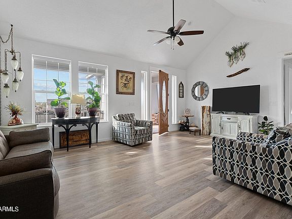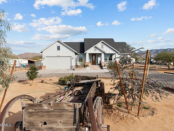 A rare find with this craftsman style home in the town of Congress. Enjoy your mini homestead on just under ½ acre which includes a; raised garden bed; watering system; and peach, orange, pecan, apple, and avocado trees. The home has an open concept, split bedroom floor plan with vaulted ceilings in the living room, an eat-in kitchen, w/ glass cooktop range and microwave. The light and bright sanctuary master bedroom suite has high ceilings, an expansive walk-in closet, dual sinks, clawfoot tub, walk-in shower and separate room for the commode. The 2-car garage has a dry-goods pantry and overhead storage. A circular driveway is out front & RV parking to the side of the house. Large two-story child playset will convey. Numerous updates! Home was painted in 2023. Bathrooms and kitchen also updated recently.
