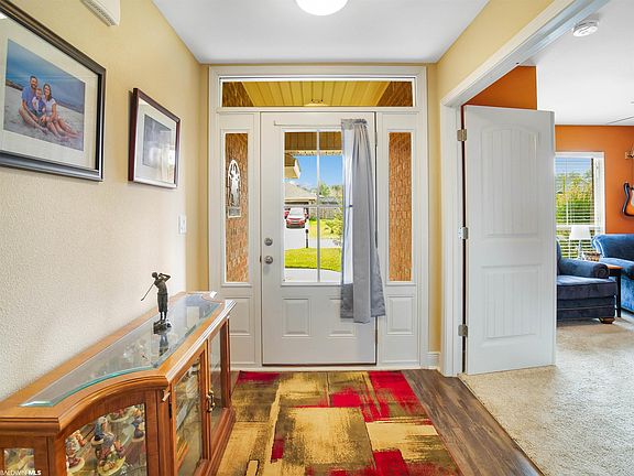 This LAKE FRONT home is centrally located with easy transit from the Foley Beach Express to the beautiful white sand beaches and all the great restaurants and shopping the Gulf Coast has to offer! You can be to town or the beach within minutes. One of the most desirable features of this home is the newly screened in back patio overlooking the lake. The perfect place to enjoy your morning cup of coffee or unwind after a busy day. You will never want to leave this spot! This split floor plan offers plenty of space with 4 bedrooms, a large living area, formal dining room, and breakfast area. The kitchen is equipped with vinyl plank flooring, stainless appliances to include a new dishwasher, tile backsplash, and a pantry. New carpet was installed in all bedrooms and main living areas, there are vaulted ceilings, and a double car garage. This is a great opportunity to own in a convenient Foley neighborhood!