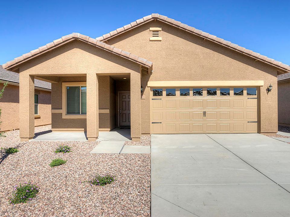 The Ajo plan is located within the quaint Sundance Active Adult community comes with over $10,000 in upgrades including energy efficient stainless steel kitchen appliances, granite countertops, custom wood cabinets, brushed nickel hardware and an attached two car garage. This beautiful, new one story home features an open floor plan, 2 bedrooms and 2 full bathrooms. The Ajo showcases a large master suite complete with a walk-in closet, as well as a separate den, a covered patio and front yard landscaping. The gorgeous community of Sundance is located on an 18-hole championship golf course and is home to a 15,000 square foot Community Recreation Center that offers swimming pools, a fitness center, tennis courts, card rooms and so much more!Picture shown is of similar home.
