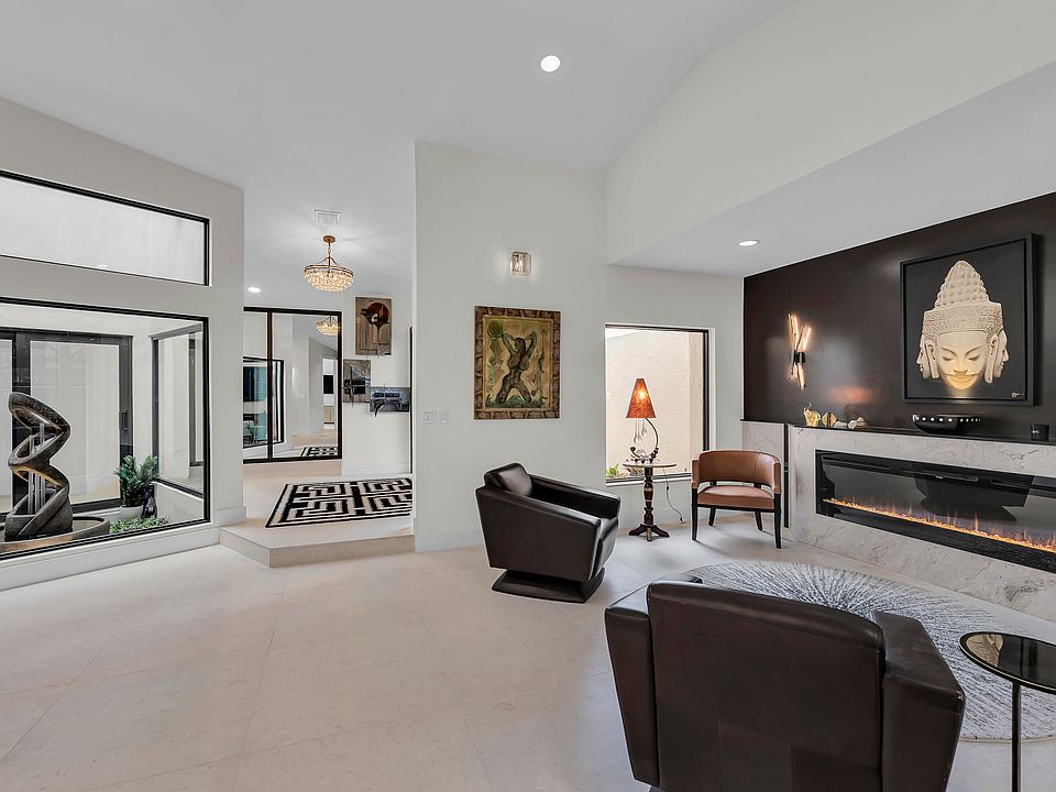 Welcome to a stunning remodel in the heart of central Boca Raton. Completely remastered, no detail or finish was spared in this one story home, featuring volume ceilings, custom cabinetry, natural stone and a sunlit atrium - sleekly combining modern design with natural textures throughout.The split bedroom, open floor plan is ideal for guests and entertaining, while the lushly landscaped pool patio with outdoor shower provides the ultimate private retreat.A state-of-the art Thermador kitchen, Italian porcelain master spa & a newly refurbished heated/salt water pool are only a few highlights of this one-of-a-kind residence.Boca Pointe is a 24hr manned and gated community with non mandatory membership ideally located in central Boca Raton.