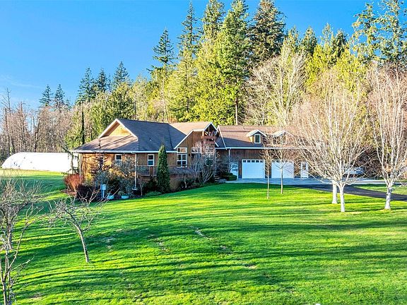 Rare 9.5+ acre sanctuary featuring a massive orchard, three ponds, and a 2,400 SF climate controlled greenhouse! Immerse yourself in a true "producer's paradise" with an expansive orchard featuring ~100 fruit-bearing trees—including crisp apples, sweet pears, plums, cherries, and figs. Complementing the orchard are ~65 thriving berry plants, ranging from raspberries and blueberries to unique marionberries, boysenberries, and goji berries.?? This upscale 2,800 SF home boasts radiant heat, a luxury primary suite, and ADU above garage for guests or rental potential. Explore private trails through old-growth woods or enjoy mountain views from your mahogany deck. Includes RV hookup with dump and plenty of shop space in the garage! Your private homestead awaits!
