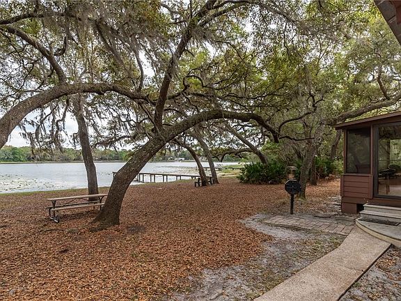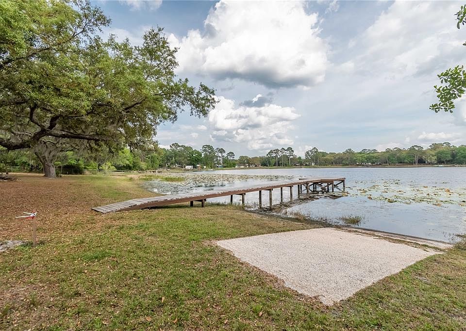 Breezy waterfront living along Miles Kale Lake! Overlooking the sparkling spring-fed Miles Kale Lake in the quiet area of Fort McCoy, this property offers a total of two parcels that feature pristine shoreline and a combined 1.12 acres. All of the acreage is fenced, with the two parcels being a gently shaded lot with the main residence and a secondary lot which has been left in a more natural state as a heavily wooded area. Move-in ready and fully furnished, this cozy lodge like Cottage rests on the eastern lot and offers plenty of sleeping space in the 1-bedroom or the spacious family room with beds for 4. This charming cottage features a large family room, a delightful kitchen with adjacent dining area, and a great screen-enclosed porch. All rooms have a restful view of the lake. This home offers a rustic aesthetic with lots of tasteful wood-work done throughout the home. A laundry shed is also attached to the home for added ease. A private boat ramp with a recently updated dock allows for easy enjoyment of the lake, opening up a variety of uses for those who enjoy spending time on their boat. Miles Kale Lake is a wonderful, natural Florida lake with a nice sand bottom and a few unique features that make it extra exciting– the lake has a gradual slope and is deeper than many other lakes in the area. The lake is great for boating on canoes, kayaks, jet skis, as well as power boats with other boats rarely being seen on the lake to provide little to no disruption on most days. Many other lakes are also in the area, making this an ideal property for those looking to discover the many activities Central Florida has to offer! If you’re ready to take in pristine water-front views or are looking for an income producing opportunity, this property is a wonderful option to consider!