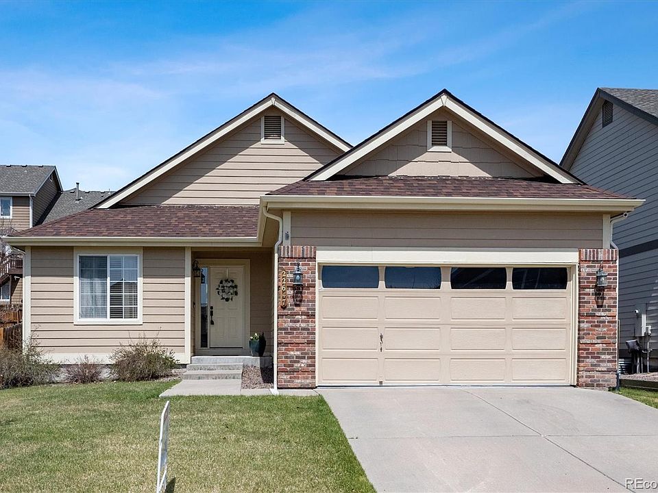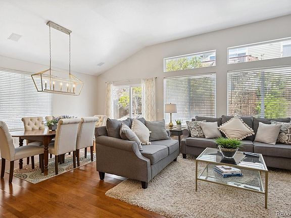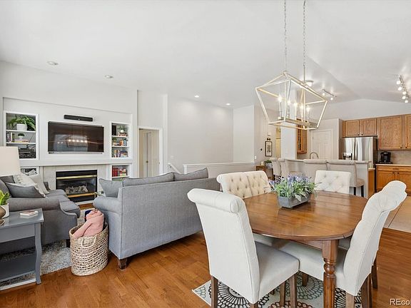Awesome Saddle Rock Ridge ranch with a finished basement! Wonderful main level with high ceilings - fantastic open floorplan! Sunny kitchen with breakfast bar, tons of cabinets and countertop space, and all appliances are included! The master bedroom features a private, updated 5-piece bath, and the two secondary bedrooms share a full hall bath! The basement was finished in 2020 and boasts a large family room with wet bar area and a fireplace, two additional bedrooms, and a 3/4 bath! Perfect for guests or older children! Could also be a great setup for roommates or in-laws! Basement is fully wired, and the built-in speakers are included! Kids and pets will love playing in the fenced backyard! New landscaping was recently completed, and the patio is great for gathering with friends and family for summer BBQs! Quiet street with an easy 1 block walk to hiking/biking trails! 20 minute walk to Canyon Creek Elementary! Super location with easy access to Southlands shopping and dining, grocery stores, and E-470! Don't miss this incredible house and incredible opportunity in popular Saddle Rock Ridge!