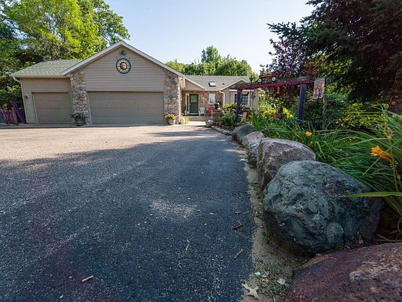 This 2000 built One Story home is located on a 2.51 acre heavily wooded corner lot. The home features 2450 FSF, 3 BR's, 3 BA's, 3 car attached garage & much more. The main floor features large open foyer to sunken living room with vaulted ceiling, kitchen w/panel oak cabinetry, pantry & eat in kitchen area, dining room with walkout to new deck, main floor laundry with 1/2 bath & sink and 2 bedrooms with a full bathroom. The basement features a gas fieldstone fireplace, wet bar, walkout to huge patio, game room , family room with built in shelving, master suite w/huge walk in closet and full bathroom w/jacuzzi. The updates include new carpet throughout & new linoleum in master BR, furnace, A/C 2018, deck in 2019, roof is approx. 8 years old. This home is perfect for entertaining with 2 large patios, 2 fire pits, walking trails throughout the property. Within miles of Becker, Big Lake and Monticello.