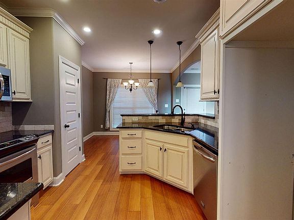 Enjoy your morning coffee on the covered back porch overlooking a private view of a pond behind this beautiful home! Home has many custom features and was built by Winter Homes. Offers 3 bedrooms, 2 1/2 baths plus a large bonus room and laundry room. Custom kitchen cabinets with granite counter tops, upgraded stainless appliances, hardwood floors downstairs and tile in all the bathrooms. Master suite is isolated downstairs with glamour bath and trey ceiling. Double trey ceiling in Great room with gas fireplace, lots crown molding thru out the house. Beautiful private yard with privacy fence that overlooks pond.