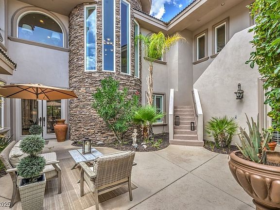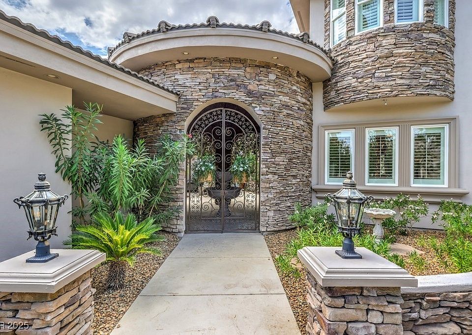 Experience resort-style living with a vibrant and friendly feel in this exclusive guard-gated community of just 88 lots. Perfectly located just minutes from The District, Green Valley Ranch Resort, dining, shopping, desirable schools, parks, trails, Vegas Silver Knights arena, and easy 215 access (15 minutes to airport). Step inside this huge one-of-a-kind two-story indoor pool room with over-looking balconies, allowing you to relax and entertain in comfort while avoiding both the extreme summer heat and the winter chill. Enjoy year-round wellness and relaxation in your own personal retreat with pool, spa, sauna, and barbecue grill area. Luxurious details include marble floors, Wolf 6-burner cooktop, granite counters, upgraded cabinetry, wine area, wet bar, shutters, decorative ceiling designs. Enjoy two primary suites (one up, one down), each bedroom with its own en-suite bath, plus a remodeled spa-like primary bathroom. A full casita with separate entrance offers added flexibility.