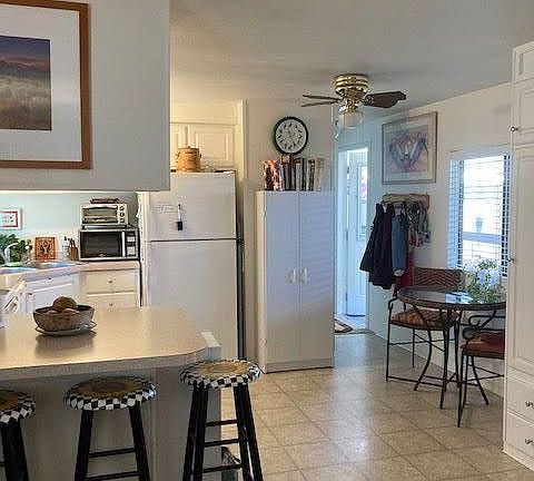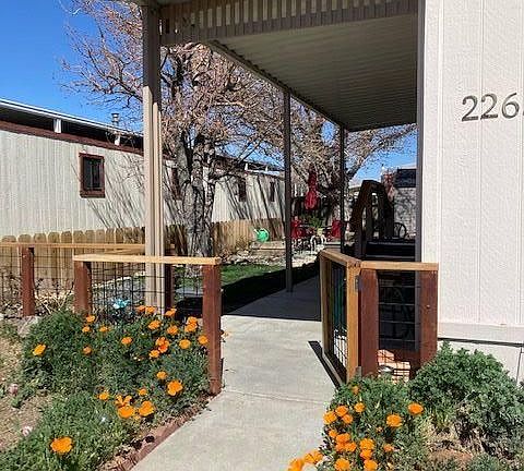 Super charming 2 bedroom, 2 full baths, single wide, 938 square feet, Senior section of Highland Mobile Home community. Master suite with walk-in closet. Beautiful flowers, shrubs, an apple tree and grass on the side of the home make the yard a pleasant place to relax. This home has a nice storage shed, workshop with electricity, and beautiful landscaping. The automatic sprinklers and drip system keep the yard looking great with little effort. Evaporative cooler and pellet stove both have thermostats. Many upgrades found in this home. All appliances included. Sale contingent on closing of property in escrow in Pahrump Nevada by Seller.