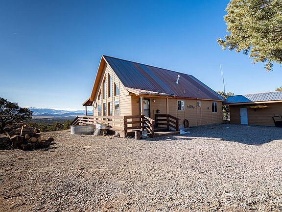 Exquisite panoramic views that rival any in all of Westcliffe Sip a beverage in the evenings on the covered wraparound deck overlooking the entire valley as you watch the sun slip behind the Sangre de Cristo Mountain Range. In the mornings as the sun rises in the east at the back of the house you will discover Grape Creek Wilderness BLM land! Hike down to 1000s of acres of grape creek wilderness.to enjoy some fishing. Very recently upgraded solar system, new lithium-ion batteries with ten-year warranty 4 K watt input full redundant dual system with propane-powered 12K generator Home has plumbed propane backup light fixtures. Brand new heated insulated shop24x30 with 220 v power. Gas grill plumbed to propane. The home features an Open floor plan vaulted knotty pine ceilings,cherry floors. Kitchen has custom cabinets and granite tops. Vermont casting wood stove plus propane wall heaters throughout. 3 bedroom, 2 baths. PLUS shooting range has been set up this is the perfect get away from all the hustle and bustle, No closing prior to June 25,2021