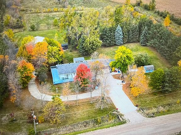Welcome to the country! 5 acres of bliss and privacy! 4 bedrooms, 2 baths with full main floor living and laundry! New furnace, new paint in most of home, beautiful hardwood floors on the main level, ample storage and natural lighting. Walk out basement that has two more bedrooms and a spacious family room. 2 car garage that is insulated and has a wood burning stove that can heat the entire home and garage if desired! Featuring a 24x32 shop that is set up for heat, multiple storage sheds, chicken coop and concrete pads. Enjoy your massive 3/4 wrap around deck with a 16x7 heated gazebo! The property is loaded with mature fruit trees and pine trees. 8 separate stations for water from the well to keep your yard and property pristine, just wait until full foliage! Second driveway to access the fruit trees and back acres with ease, or use the full concrete path to the pole barn and back yard! Multiple lakes surround the area! Rare opportunity, don't wait for someone else to enjoy it!
