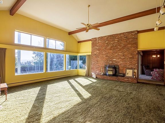 SOLID 3121sf MIDCENTURY MODERN CHARMER! LOCATED IN A GREAT PRIVATE LOCATION OF COOS BAY OFF KOOS BAY BLVD. Lot is .85 ACRES!! 4bdrm, 4 bath, Large Family RM & Living RM, Formal Dining RM, Sunroom, 3 Original Brick & Mortar Fireplaces (one with built in pellet stove) High Vaulted Ceilings with Rough Cut Beams, Lot of Original Clear Vertical Grain Fir Doors & Cabinetry with Built-ins for Plenty of Storage. Covered Porch & Patio, Big Yard & Mature Landscaping. WATCH VIDEO/VIRTUAL TOUR FOR AERIALS