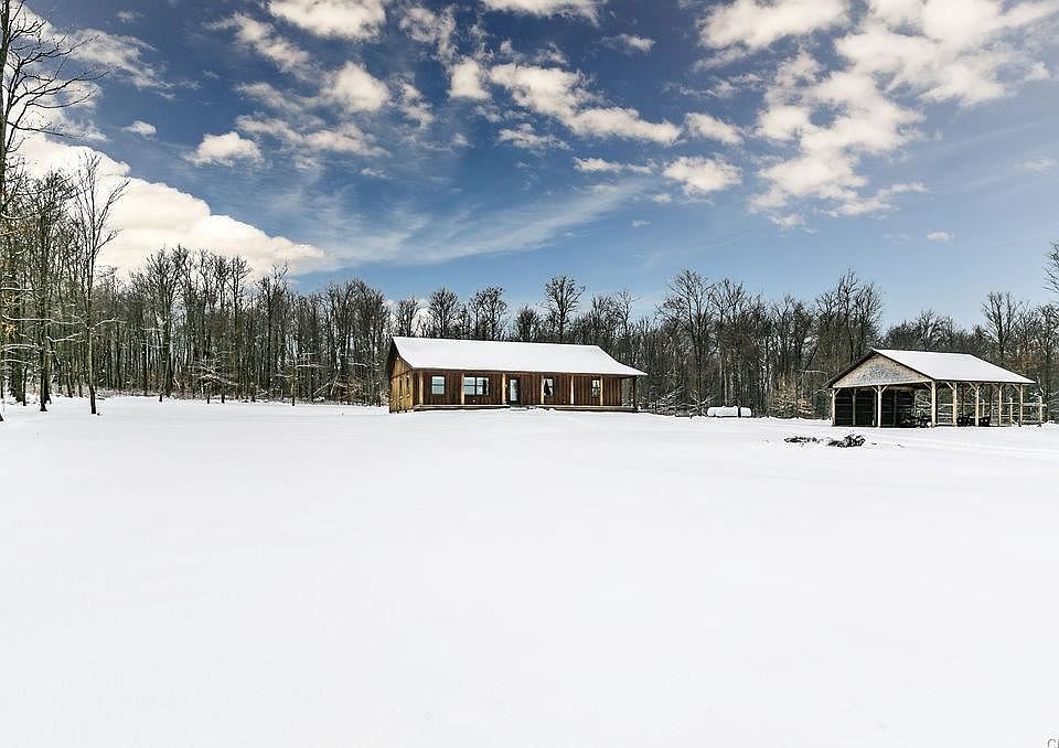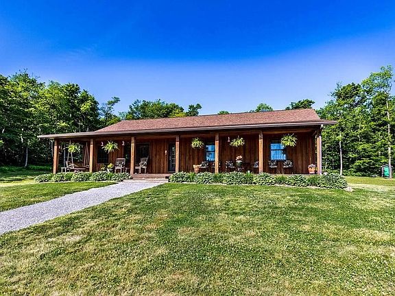 Lovingly called Serenity Lane, this custom built ranch offers you just that- the peace & serenity that being nestled on 50 acres of woods offers. The winding private road leads you to a picture perfect cabin-style home with a "top of the world" view. Open & airy, the living area combines kitchen-DR-LR in one large, yet cozy space- crowned by vaulted ceilings & warmed by the radiant floor heat. The huge kitchen island is the heart of the home, with counters perfect for baking (there's huge pantry for that, too!). The primary bedroom is simple & luxurious at the same time- nicely appointed with double sinks, huge walk-in shower & walk-in closet. The basement is a study in potential- radiant floor heat & 9' ceilings, ready to finish your way. Outside you'll find the pavilion structure, which can be finished to a high-end garage, as the electric (O-M co-op) & radiant plumbing is run to it. This is a special opportunity to own a private paradise- whether for hiking, hunting, snowmobiling, or just the quiet, the location (with adjacent State lands) makes this a truly unique, retreat-like property. Trails, wildlife, sunrises and rainbows... There's something for everyone at Serenity Lane.