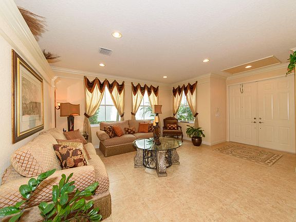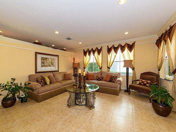Fully furnished former developer model home on Olympia's model row! This Merriweather Village charmer sits gracefully waterfront on the best street in Olympia! Four bedroom (4th BR opened up to serve as an office connected to MB), large master with upgraded en suite bath. Entire home is luxuriously appointed with upscale developer finishes, recessed lighting, crown molding, ceiling moldings, all baths have upgraded tile and fixtures. Open floor plan, first floor family room leads to two level outdoor paver patio with resort style pool, power awning, mature landcaping, and a fabulous waterview. Don't miss the opportunity to own a waterfront beauty in Wellington's most sought after gated community.