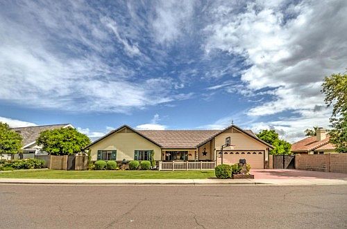 Complete info: http://2265northgentrystreet.BestHomeAround.com - Welcome home. No HOA. RV gate and pad, oversized garage bays, irrigated citrus yard, exterior pavers, security door AND the front porch you've always dreamed of. Staggered tile roof recently replaced to maintain shake roof flavor. Brick and siding exterior, stained concrete, and cement walkways in the backyard add to the charm of this lovingly built and maintained home. Completely remodeled bathrooms and laundry room, granite counters with undermount sinks, wood beam ceilings, wood-burning stove complete with brick wood box and bayed bonus area, add to the value. Enjoy wooden blinds and shutters throughout, new raised panel bead board doors, high quality kitchen cabinets with separate granite bar. Low-E windows, extra insulation, and new A/C compressor (2014) all add up to energy savings.